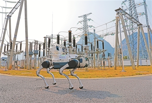 最近,在南方电网南宁供电局110千伏康平变电站,四足智能机器人在自主巡检,保障迎峰度冬电网稳定运行。目前,由南宁供电局自主研发的四足机器人“一机多站”巡检模式已正式在生产班组实际运用,该模式突破通信保障、终端调控、系统融合、多楼层地图自适应等四大技术难题,实现“一机多用、多站共享”。马华斌/摄