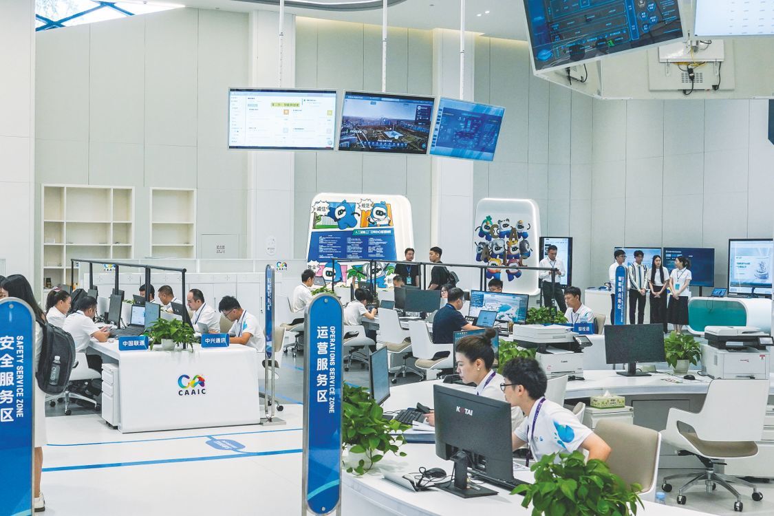 南A中心服务大厅里设立10个智慧服务窗口,构建起“一站式”国际人工智能产业服务平台。