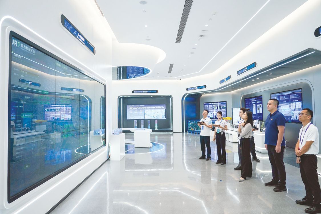 参观人员在南A中心感受人工智能赋能千行百业的创新实践。