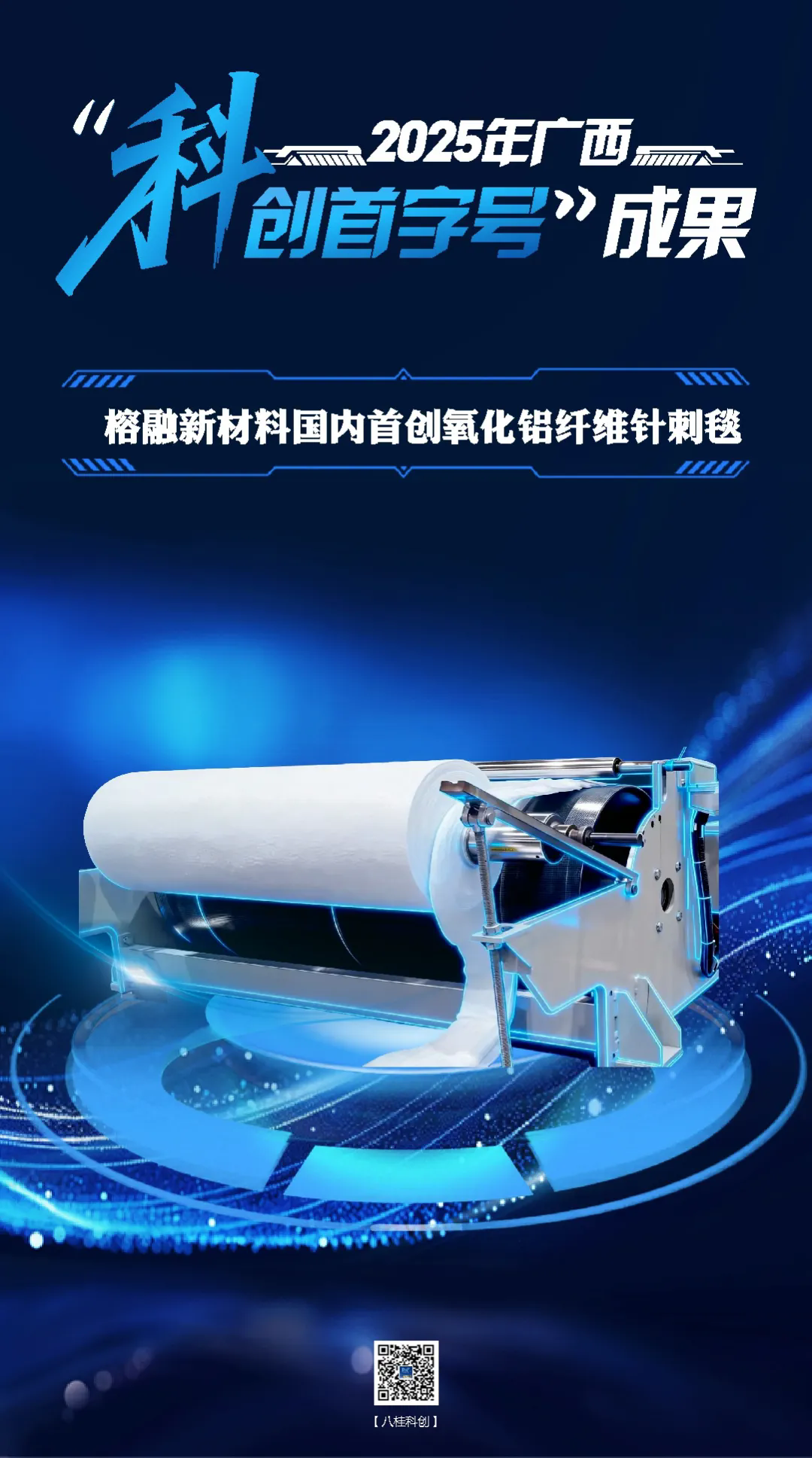 榕融新材料技术(广西)有限公司创新设计了静电场力和气流牵伸两种合力控制纤维形态,形成了均匀稳定纤维网,攻克了纤维成网均匀性、针刺工艺以及高温性能等方面的难题,解决了国产氧化铝纤维性能稳定性及生产厚度仅为6—25mm等“卡脖子”技术,价格较进口产品降低约40%,国产替代优势明显。2025年,该款氧化铝纤维针刺毯系列产品完成千吨产能建设,实现销售收入5598.5万元。